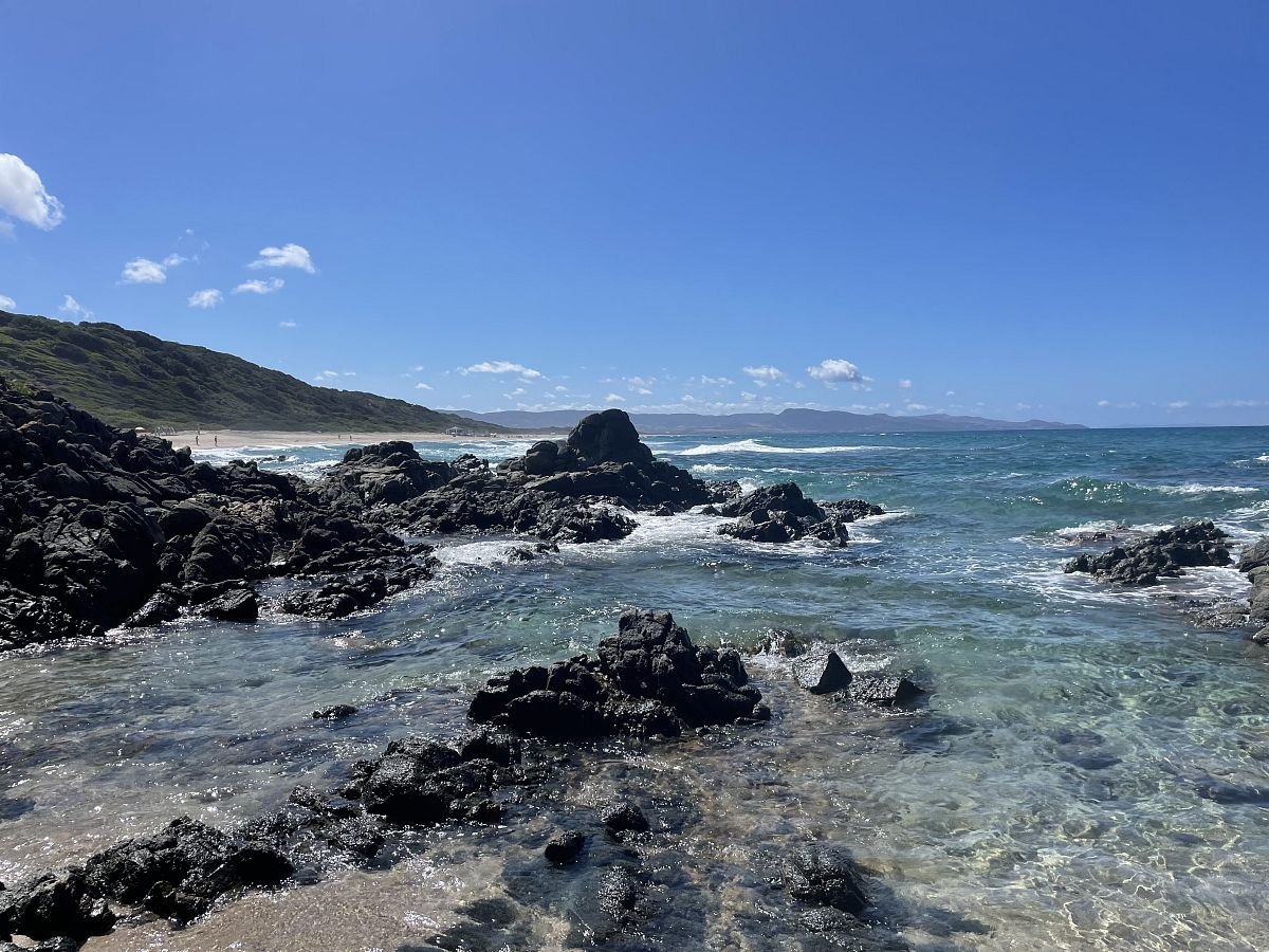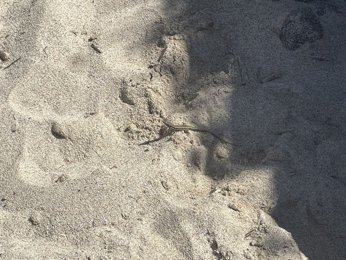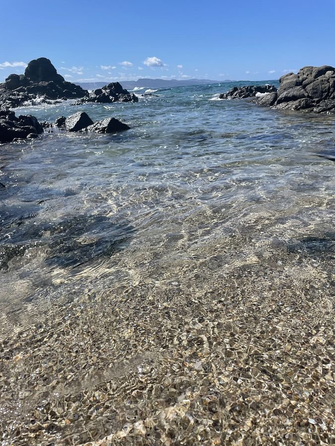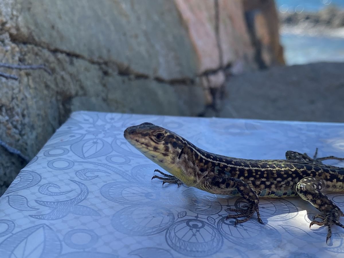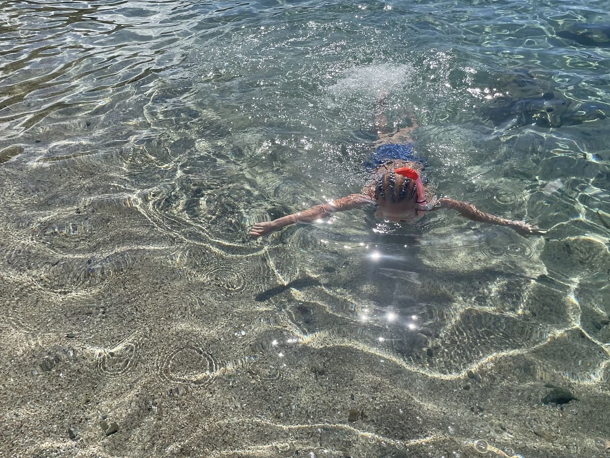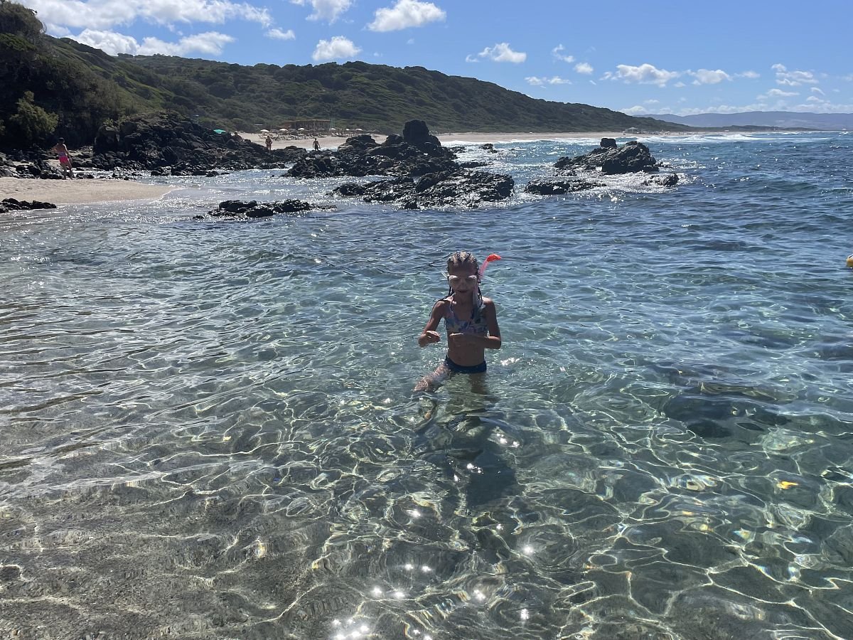 Nakonec jsme našli ještě něco lepšího blíž k našemu ubytování. U dlouhé krásné pláže, kde jsme na různých místech byli už 2x, byly opět větší vlny. Ale na jejím konci, kousek za Li Feruli, byla taková maličkatá plážička mezi kameny. Přesně pro nás. A v podstatě bez vln🙂 Skoro celý den jsme tam byli sami, jen s jednou rodinkou. A s hromadou ještěrek a rybiček 🥰🤣