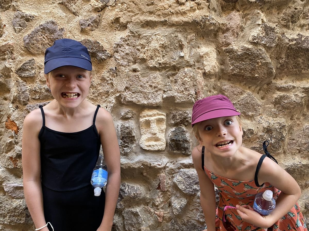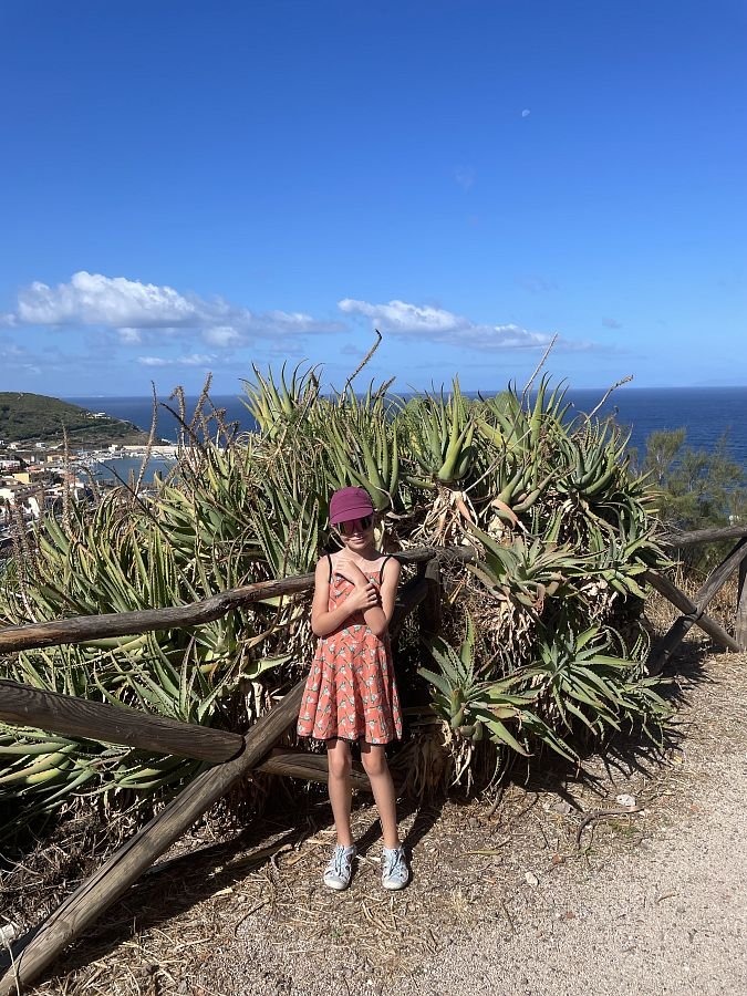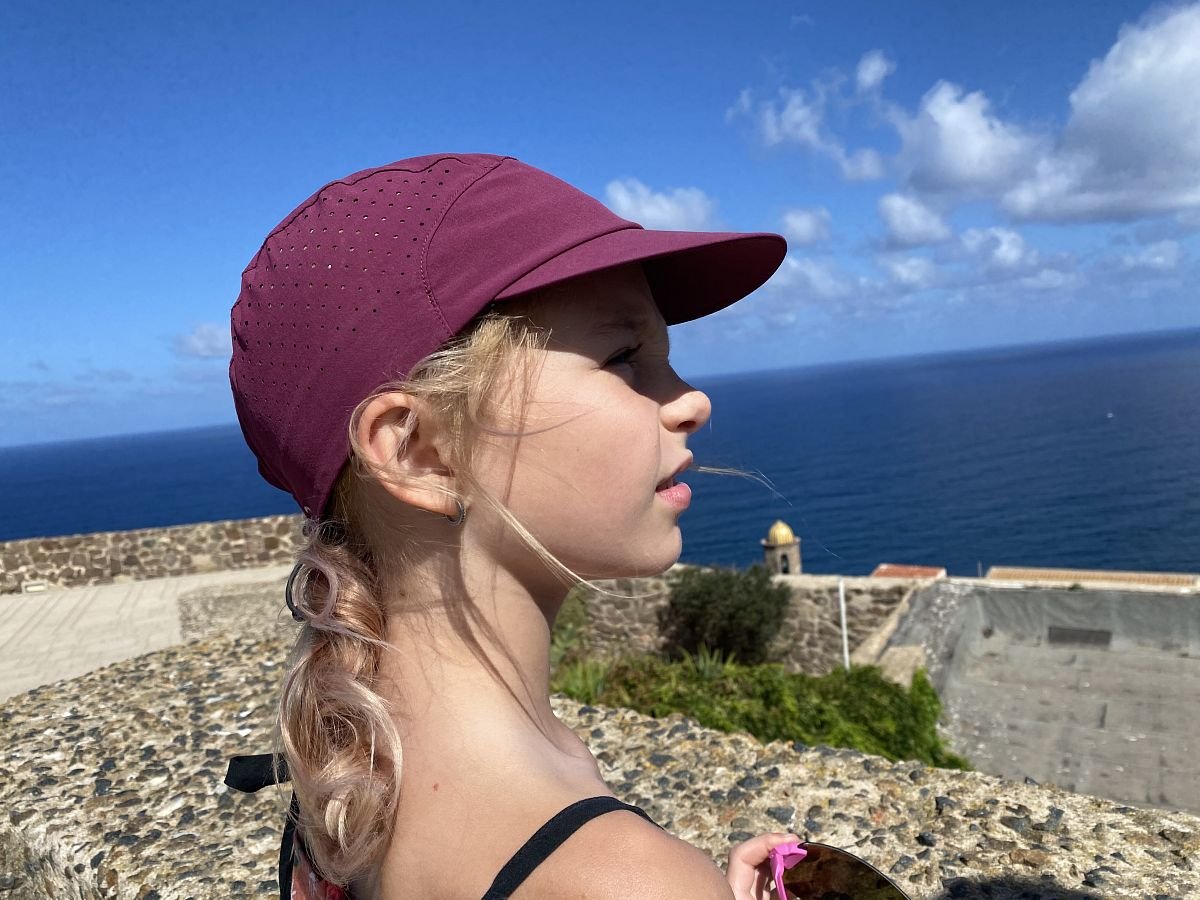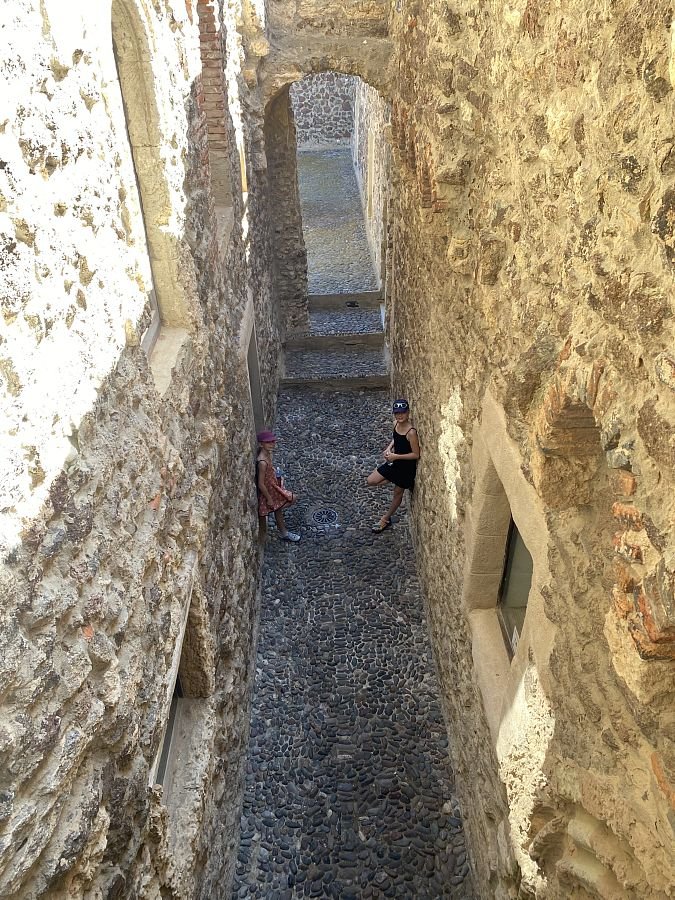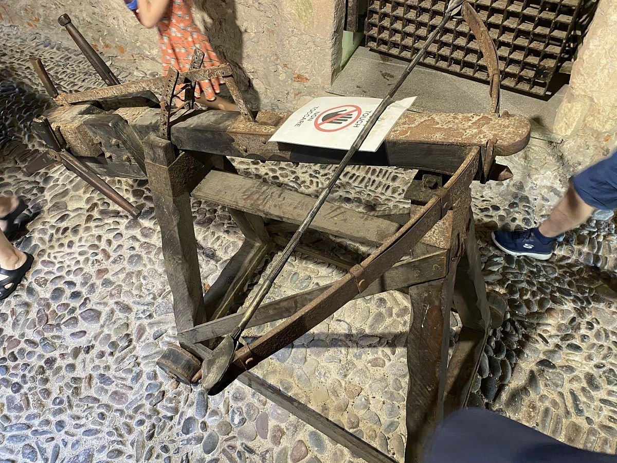 Cesta byla cca 55 km a hodinka času. Místo zajímavé. Zaparkovali jsme v horní části města, zjistili jak funguje parkování přes EasyPark a vyrazili vzhůru na hrad. Po zaplacení vstupného 5€ za dospělého a 4€ za děti jsme si ho šli prohlédnout. Expozice byly věnované primárně tradičním proutěným výrobkům a klecím na rybolov, který je na Sardinii tradiční.