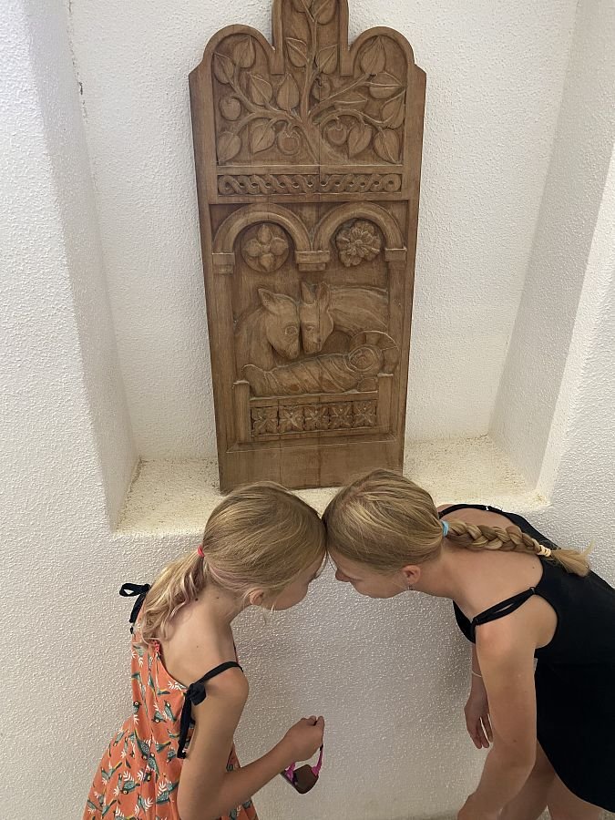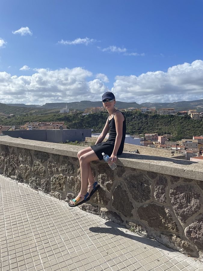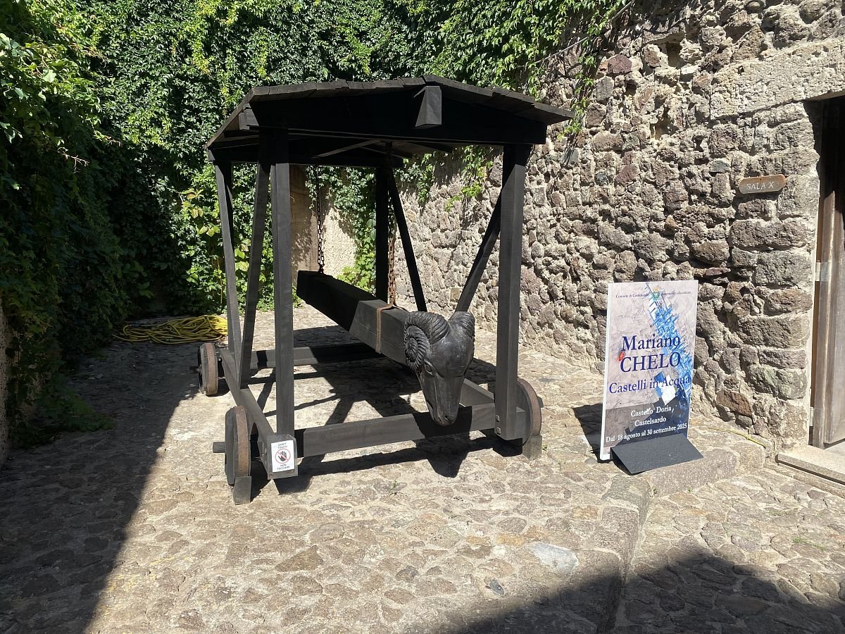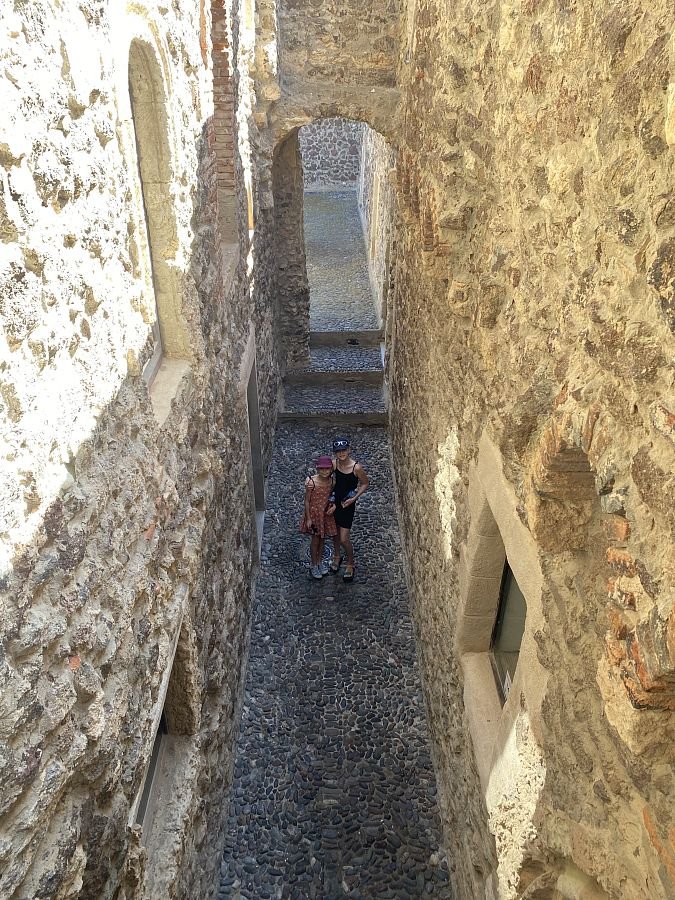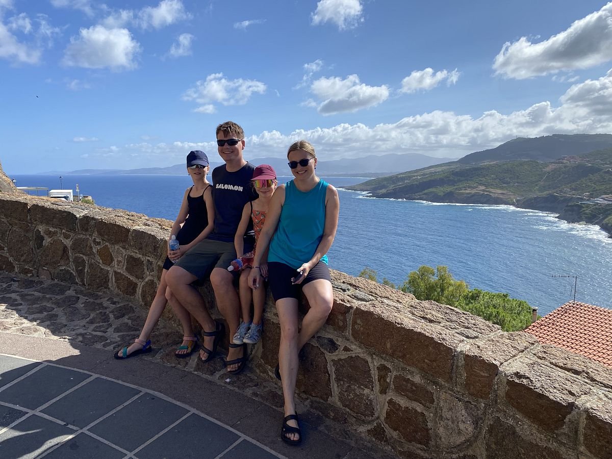 Cesta byla cca 55 km a hodinka času. Místo zajímavé. Zaparkovali jsme v horní části města, zjistili jak funguje parkování přes EasyPark a vyrazili vzhůru na hrad. Po zaplacení vstupného 5€ za dospělého a 4€ za děti jsme si ho šli prohlédnout. Expozice byly věnované primárně tradičním proutěným výrobkům a klecím na rybolov, který je na Sardinii tradiční.