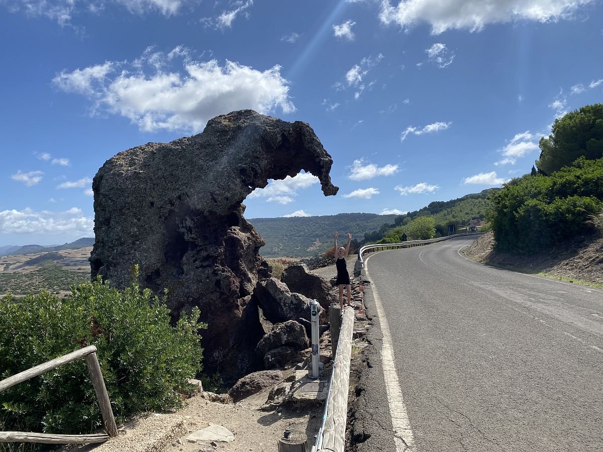 Cestou k autu jsme okusili místní zmrzku, je vynikající 😂 A vyrazili směr pláž s tím, že se někde najíme. Chuť padla na pizzu a tak jsme dali cíl nějakou pizzerii. Po cestě jsme jeli kolem Elephant Rock, Izi se nechala obalamutit, že si bude moct sáhnout na slona. Kaja už ne 😂