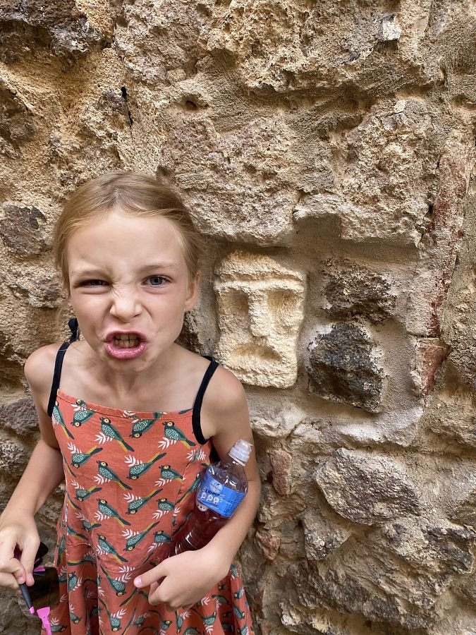 Druhý den ráno jsme v posteli ještě dooslavili Marti narozky, dárek od Káji Marťa dostala už ten předem, od Izí a Davida až ráno. Pak nás přivítal krásný výhled na moře, o kterém jsme z předchozího večera neměli ani ponětí. Posnídali jsme na terase a koukajíc na moře a skalní město v dáli se rozhodli, že než bude tepleji, vyrazíme se tam podívat.