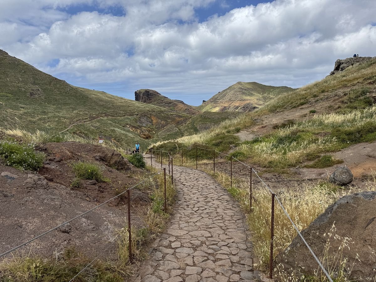 Je asi 15:30 a my v Caniçal měníme auto za naše a jedeme směr výběžek Ponta de Saõ Lourenço. Komicky auty přeplněná silnice imitující parkoviště se v tuto dobu začíná vyprazdňovat, a tak parkujeme začátku pěší trasy úplně nejblíž, jak to jde. Kupujeme povolení (vstup na trasu za 3€/os) a vyrážíme.