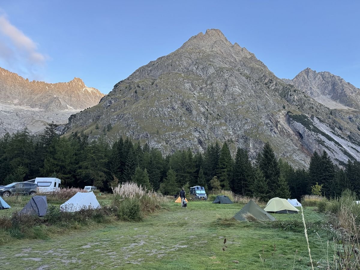 Do kempu La Fouly přicházíme chvilku před zavřením recepce, paltíme asi 30 franků a jdeme postavit stan (vse je v cene - tepla sprcha a je tu i místnost na jidlo pro kempery). Stan dostavujeme skoro za tmy, rychle do sprchy, najist a utahaní vyčerpaní, ale štastni spát.
